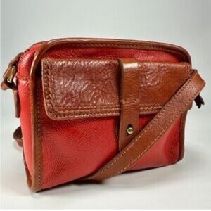Madewell Leather Camera Crossbody Bag Purse Orange Red and Brown