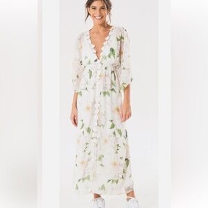 Anthropologie x Farm Rio Dahlia Sheer Floral Print Maxi Dress or Beach Cover-up Kaftan