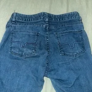 Kimes Lola dark wash with minimal wear on cuffs as shown in photos. Only worn a dozen times or so-they’re too small now. Size 2 with 34” inseam.