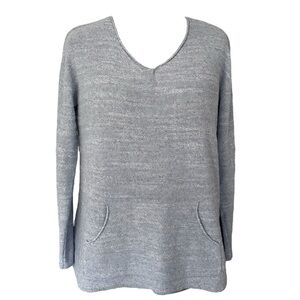 Pure Jill Light Blue long sleeve cotton summer Sweater V-Neck, front pocket Sz M