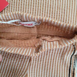 Adorable and comfy, this Kidichic baby boy 2-piece set includes a short-sleeve top and matching elastic-waist shorts in a light tan and white stripe pattern. Made from soft, textured cotton for breathable all-day wear. Perfect for summer outings, photos, or gifting.