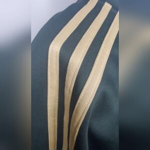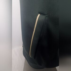 the brand with the 3 stripes - dark green - beige stripes -side pockets - zipper up.