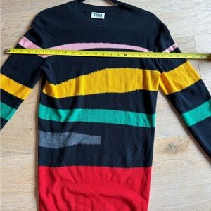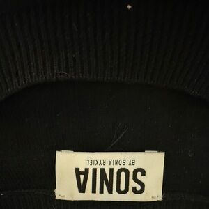 Elegant black knit sweater dress by Sonia Rykiel. Timeless and versatile design. Please note that only front of sweater features color blocking; back of sweater is solid black.