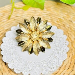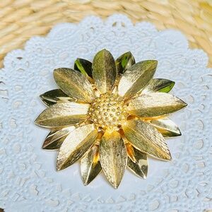 Vintage Sarah Coventry Sunflower Brushed Gold Tone Satin Petals Pin/Brooch