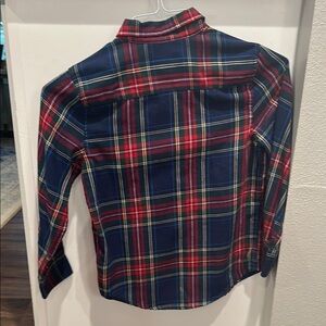 This Wrangler button-down shirt features a classic blue and red plaid design, perfect for casual wear. Made from comfortable fabric, it offers a timeless style with its traditional tartan pattern.