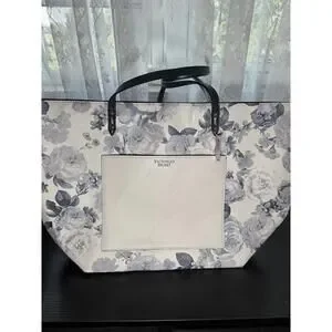 Brand new with tags! Victoria’s Secret large floral tote bag featuring a romantic purple and blue rose pattern, black shoulder straps, and front logo patch. Spacious interior with magnetic closure – perfect for travel, beach, or everyday use. Originally $58. Minor flaw on corner trim (see photo).