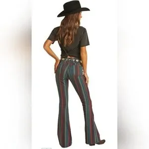 Rock & Roll Cowgirl Denim Bargain Bell Bottoms Pull On Size 26 Stripe Festival