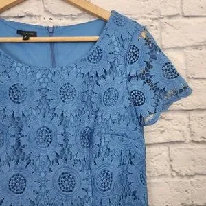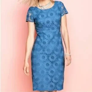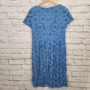 Size 8, blue floral sunflower lace overlay dress by Talbots.