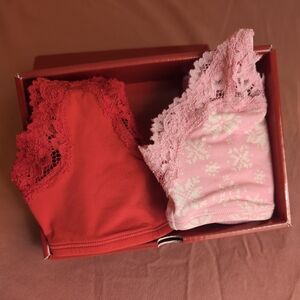 This 2-pack of the best buttery-soft bralettes with luxe lace details comes perfectly boxed and ready to gift. Features adjustable straps and a lace trim along the neckline and underarm. Fits true to size.