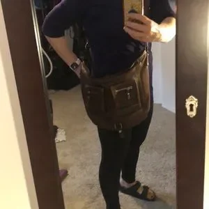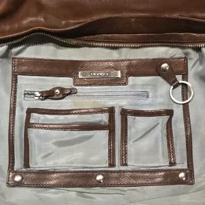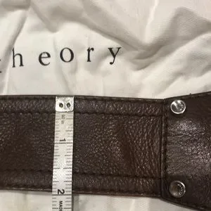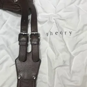 Crafted from rich brown leather, this Theory crossbody bag combines elegance with practicality. Its sleek design and adjustable strap make it perfect for everyday use, while the supple leather adds a touch of luxury.