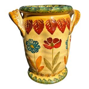 Italian Pottery Vase Hand Painted Made in Italy Flowers