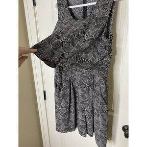 Halogen XL Sleeveless Romper Black White Geometric Print One Piece Chic Pockets