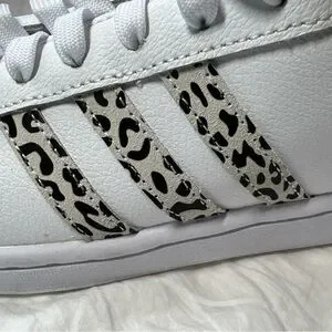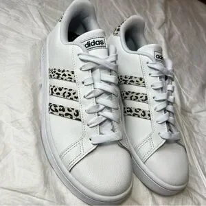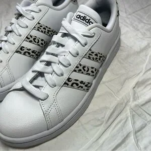 Adidas Womens Grand Court Womens Sneakers White Black Cheetah Size 8 NEW