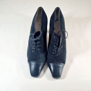 CHANEL Vintage Black Suede & Leather Lace-Up Heels - Made in Italy