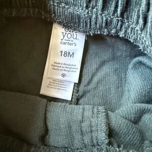 These green cordoray joggers by Carter's feature a comfortable elastic waistband and gathered ankle cuffs, crafted from soft corduroy for a relaxed fit. Ideal for everyday wear, they blend practicality with a touch of style.