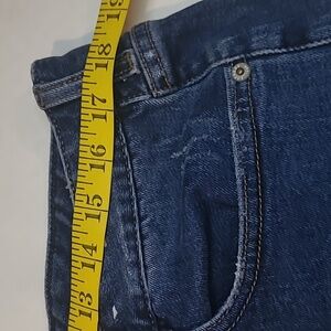 Express Blue Jean Original Shortie Relaxed Low Rise Distressed Frayed Hem 16