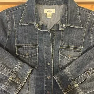 Vintage OLD NAVY Sz 12 Y2K Jean Dress Snap Front Brest Pockets Spandex Denim