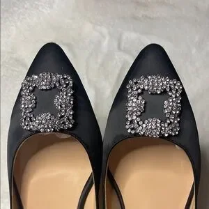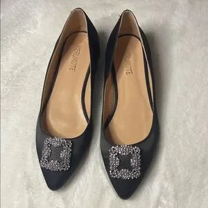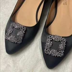 Black Embellished satin Women's Flats