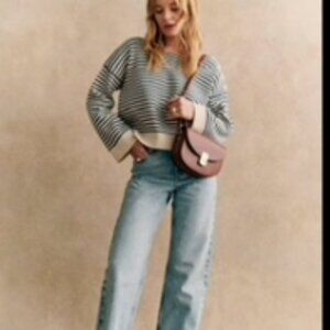 Organic cotton sezane sweater, navy and cream