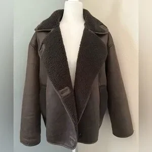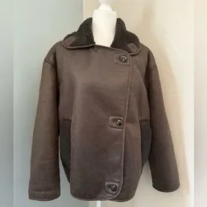 ZARA DOUBLE-FACED BROWN FAUX SHEARLING LAPEL FUR COLLAR, AVIATOR JACKET