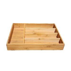 Genuine Bamboo Office Cutlery Organizer Drawer Storage Tray
