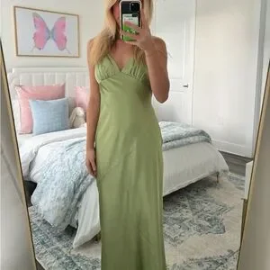 Satin Slip Dress in Green