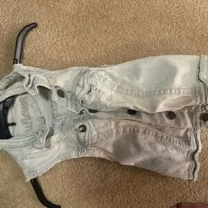 Stylish light denim sleeveless vest with button details. Perfect for layering.