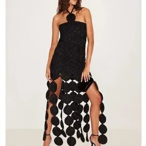 Turn heads with this stunning black halter dress. Perfect for evening events, it combines elegance with a modern twist.