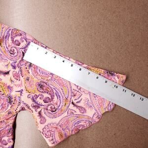 Silk Blend Blouse Sz L Pink Paisley Tie Front Butterfly Sleeve