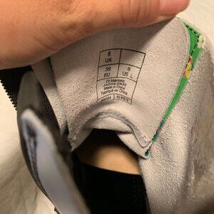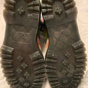 A rare pair of Doc Marten's "Jadon Daze" pattern boots, size US 8 (UK 6, EU 39). Decorated in a wild mix of tropical pink, green, orange, and teal, these boots feature Doc Marten's legendary stitching with a thick 1.5" platform sole. In addition to the 8-hole lace-up, these boots have zips up the inside of the ankle for easy on and off. Head-turning and comfortable!