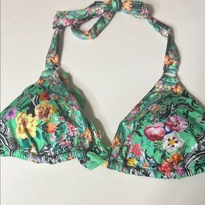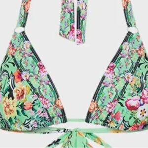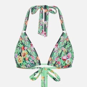 Camilla Vibrant floral bikini top with a green base. And crystals throughout . Perfect for summer.