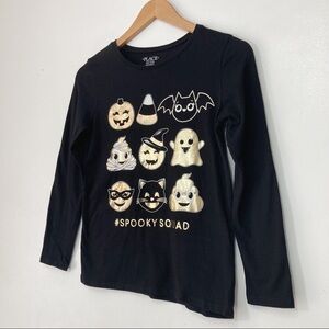 The Children's Place Girls Black Crewneck Halloween Long Sleeve T-Shirt FEATURES: Novelty Halloween "Spooky Squad" emoji tee. Crewneck. Long sleeve. Fabric; 100% Cotton Colours: Black, Gold, White Chest: 15" Sleeve: 19" Length: 22" EUC Use code MICHELLEMODE and receive C$15 off your first Poshmark order!