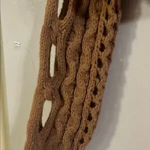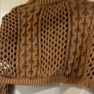 Stay cozy and stylish with this brown cable knit cropped sweater. Perfect for layering and adding a touch of warmth to your outfit.