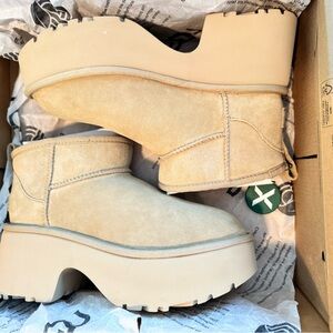 Experience the perfect blend of comfort and style with these UGG Tan Ankle Boots. Featuring a unique geometric tread pattern, these boots offer excellent grip and durability. The classic tan color ensures they pair effortlessly with any outfit, making them a versatile addition to your wardrobe.