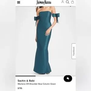 Sachin & Babi Marlena Off-Shoulder Bow Column Gown 6 NWT