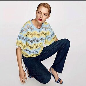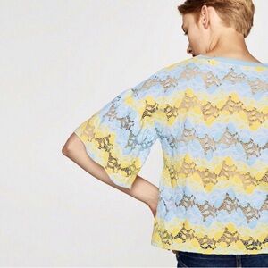 Zara Women’s Burnout Lace Pullover Bell Shaped Quarter Sleeves Top. Colors are yellow and baby blue. New with tag.