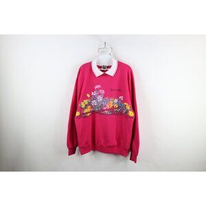 Vintage 90s Streetwear Womens Large Marco Island Flower Collared Sweatshirt USA