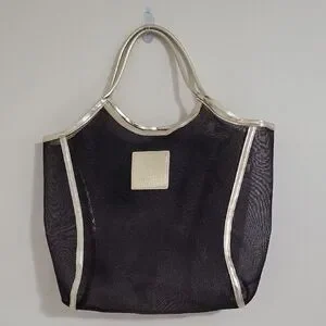 Victoria's Secret large nylon tote or beach bag. Black with gold trim along with the square Victoria's Secret emblem. This is perfect for the beach! See pictures for measurements. The last picture shows a mark. Otherwise, it's in great condition!
