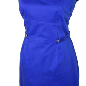 CALVIN Klein Womens Button Tab Cotton Canvas Pencil Dress Size 12 Royal Blue