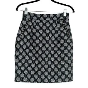 H&M Black with White Circle Print Business Midi Skirt Size 6