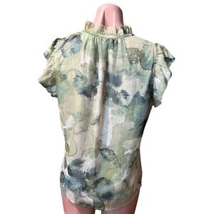NWOT Haver London Ruffle Sleeve Blouse Leaf Print V-Neck Sleeveless size S