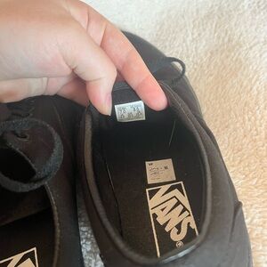 Sleek all-black Vans with a classic lace-up style. Durable canvas material.