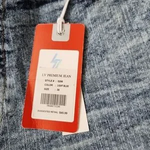 Skinny blue wash jeans. Side pocket with button closure. New with tags.