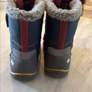 Keep your child's feet warm and stylish with these cozy waterproof winter boots. Featuring a durable design in gray and red, these boots are perfect for outdoor adventures. Size 12 toddler. Cozy lined.