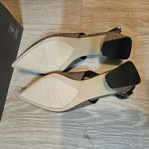 . Elevate your style with Franco Sarto's sophisticated brown heels, featuring a chic slingback design. These shoes combine elegance and comfort, making them perfect for formal occasions. The rich brown hue adds a touch of timeless class to any outfit.