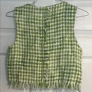 Zara Tweed Vest in Green and White with Gold Accents