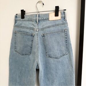 Everlane The Way High Jean in organic cotton. Light wash. Gently used condition with no flaws to note. Regular length. Straight fit. Zipper fly. Five pockets. Some stretch. Size 26 regular