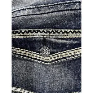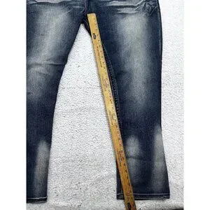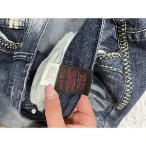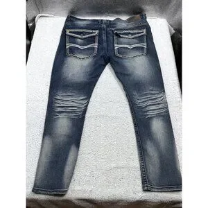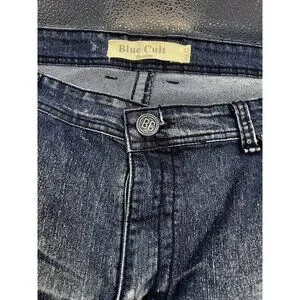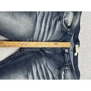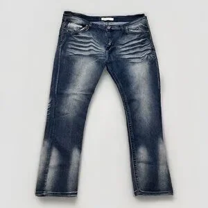 Men's Blue Cult Faded Wash Denim Jeans Embroidered Pockets Size 46x32