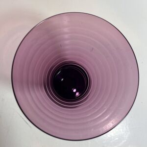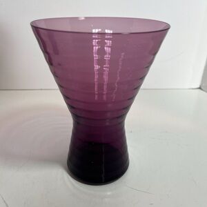 Beautiful Amethyst Glasses have cylindrical embossed lines 1/4in apart from the bottom to the top of the glasses. H 5 5/8in, Top Diameter 4in, Bottom Diameter 2.5in. Excellent condition no chips or cracks. Very stunning glasses to have in your collection.