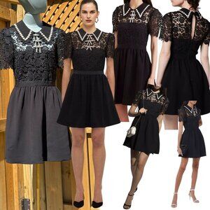 🆕 SELF PORTRAIT 🧿 NWOT Black Guipure Diamante Lace Mini Dress - Sz UK 10 US 6